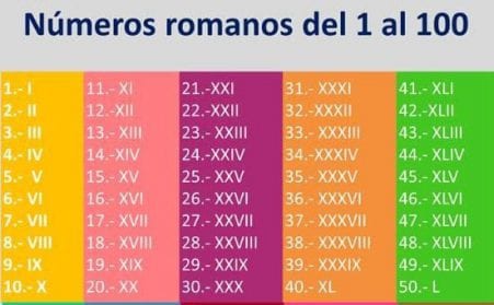 Los números romanos del 1-100