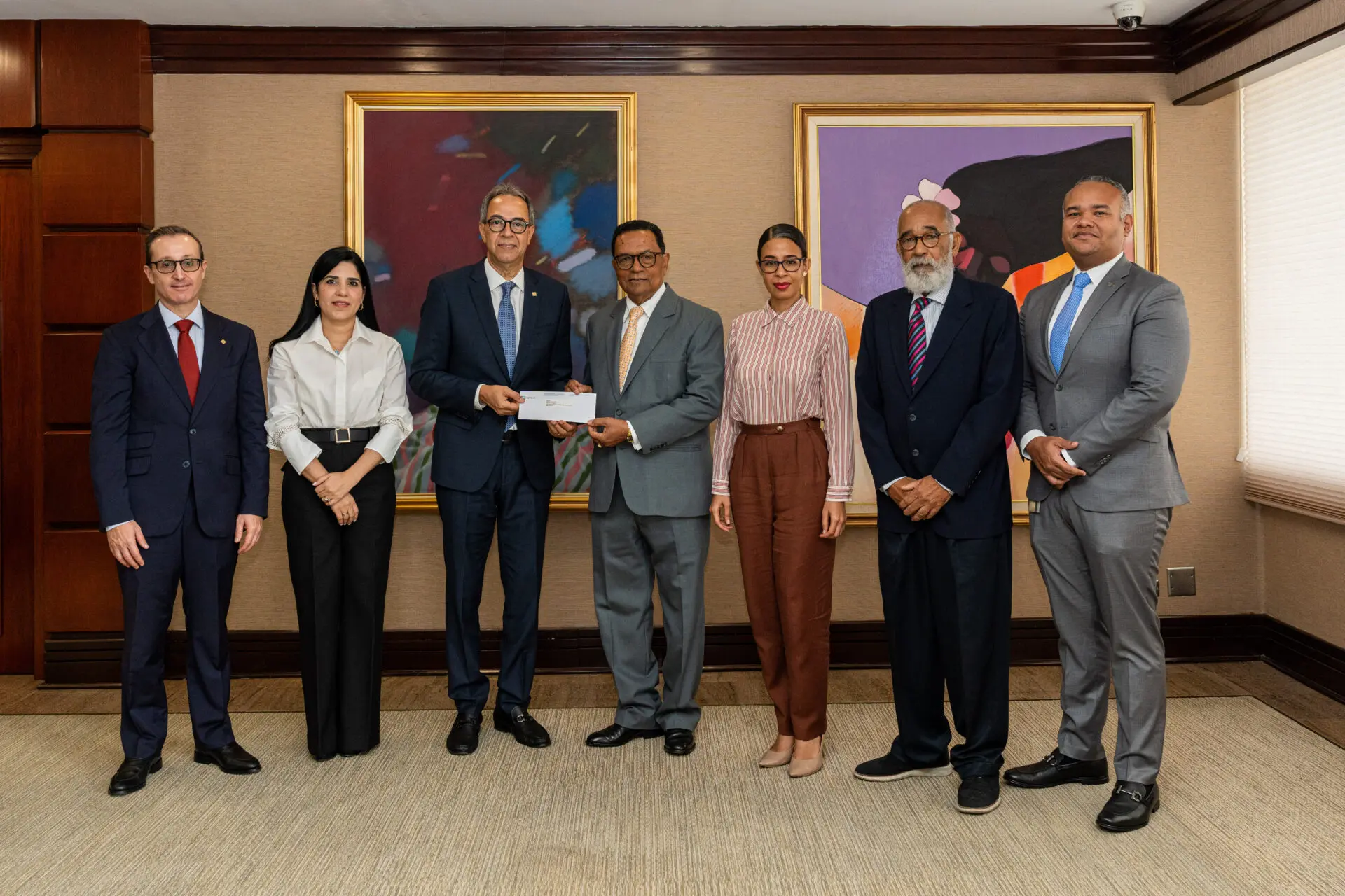 Para estos fines, el señor José Mármol, vicepresidente ejecutivo de Comunicaciones Corporativas, Reputación y Banca Responsable del Grupo Popular, fue el encargado de dar el aporte al escritor Rafael Peralta Romero, director general de la BNPHU.