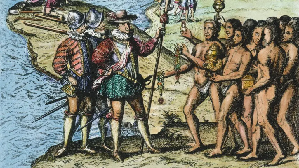 La presencia de los españoles en las Antillas produjo distintas reacciones por parte de los nativos, predominando en el comienzo una acogida favorable y cálida. La hospitalidad hacia los recién llegados se manifestó, por ejemplo, en los intentos por establecer un diálogo con Colón, en la entrega de alimentos y obsequios y el alojamiento los españoles en sus poblados. En La Española, sobresalió la figura de Guacanagarí, cacique del Marién en el noreste de la isla, quien trabó amistad con el Almirante y aceptó la construcción del fuerte Navidad en sus dominios (diciembre de 1492). Así las cosas, Colón retornó tranquilo a España confiando en una rápida sumisión de los aborígenes de las Antillas.